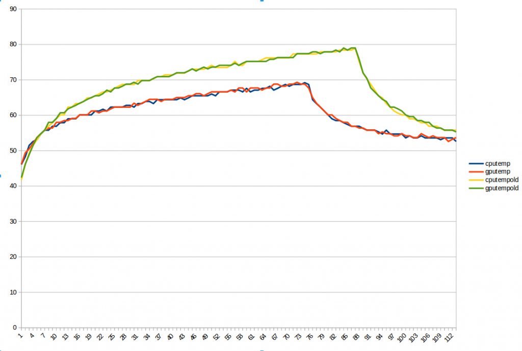 An important side effect is the ability of the process computer to sustain performance for longer runs – this can be shown in the figure which plots the temperature against the time when the process computer’s SoC is under heavy load.